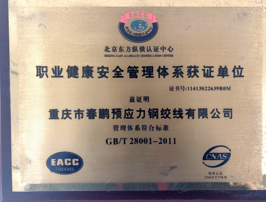 职业健康安全管理体系获证单位